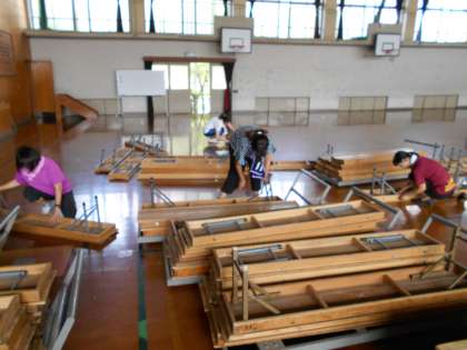 昨日はあんなに長かった2時間が本当にあっという間でした。教職員の皆さんもそれぞれの分担場所で,本当に集中して作業をしてくださいました。こんな言い方は失礼かもしれませんが,汗だくになりながらも,文句の一つも言わず,集中して学校の環境整備をして下さいました。お疲れ様でした。人によるとは思いますが,早ければ今日から…遅ければ3日後ぐらいに襲ってくる筋肉痛にお気をつけください。お大事に!