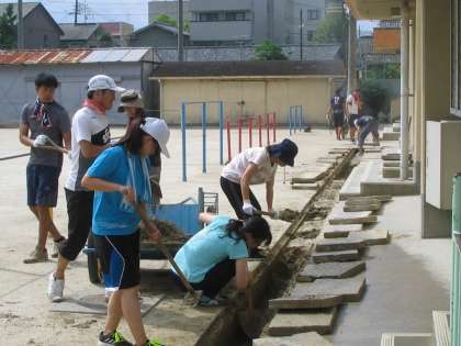 今日は職員作業でした。朝の9時から約2時間半,それぞれの担当場所で環境整備をしていただきました。私は運動場と体育館の間の排水溝に詰まった砂を取り除く作業をしたのですが,とにかく暑い!溝蓋のコンクリートがとにかく重い!溝蓋の隙間から溢れだすように積もった砂の量がすごい!