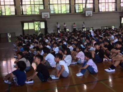 始業式では,校長先生に「切り替えを大切にしよう」というお話をしていただきました。校長先生の方を見て一生懸命話を聞く姿に,2学期へのやる気を感じました。