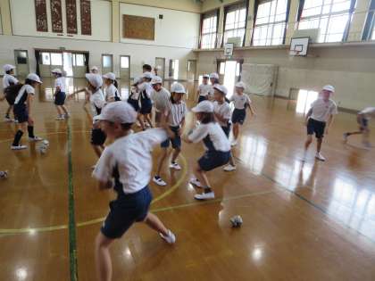 体育の授業「体つくり運動」の活動の1つで,「紙ボールドッジボール」を行いました。2チームに分けて夏の暑さに負けない,熱い戦いが繰り広げられました。けがに気を付けて,活発的に活動を行っていきます。