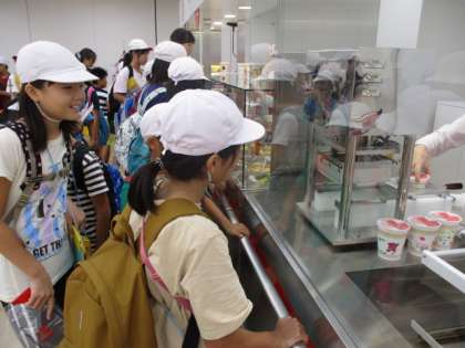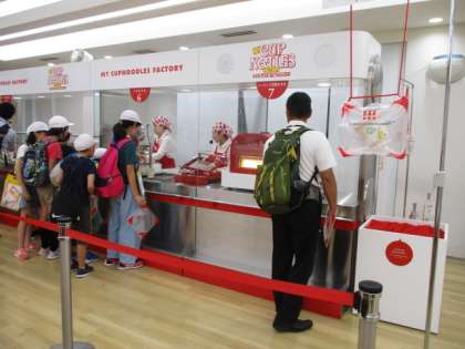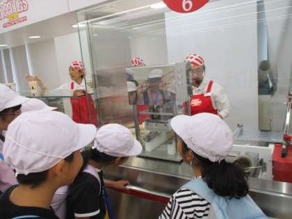 自分だけのカップができたら,次は具材です。学校で好きな具材を決めていきました。実際に,カップラーメンができる工程を直接見ることができました。出来上がったカップラーメンを受け取るととても嬉しそうでした。