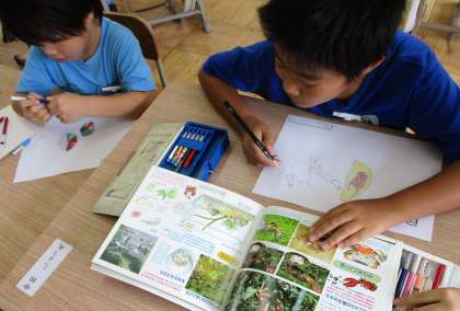 ウサギやカニを書き足したり,カラフルな色にしたり,