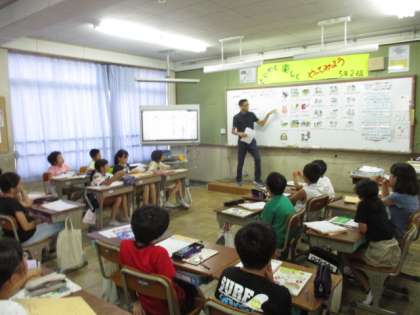 新しいALTとして,アリオーラ先生が来てくださいました。とても,爽やかで優しく,子どもたちはとても楽しく外国語の勉強をしていました。