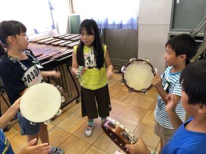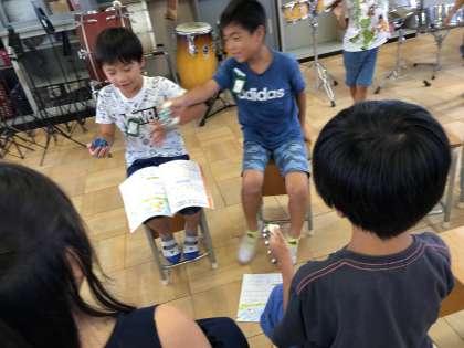 音楽の学習で曲を聴いて,その曲に合わせてリズムを打つ学習をしています。子どもたちは2拍子と3拍子を聞き分けてリズムを打てるようになってきました。今日は音楽室にある楽器を使って班ごとにリズム打ちをして,みんなに発表しました。同じ楽器で同じリズムを打っていても班ごとに工夫がされていて楽しい発表会になりました。