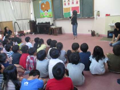 最初の手遊び歌はみんなのりのりで楽しみながら,お話を聞くときは静かにと