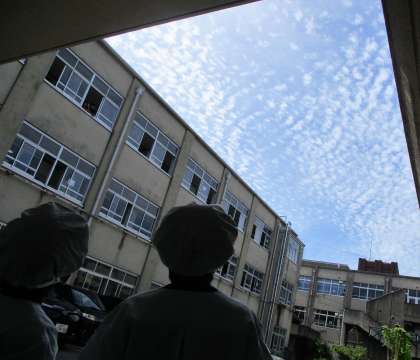 給食室に向かう時に,「雲がちぎれてる…いっぱいぶちぶちやあ」