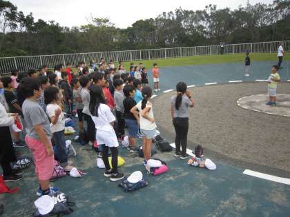 校歌を歌いながら旗をあげました。