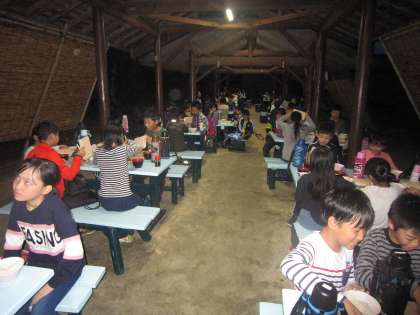 今日の夕食は東屋でいただきます。