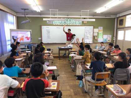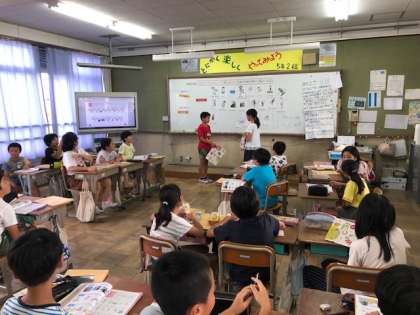 5年生の外国語活動では,Canを使って自分や第3者のできることできないことについて紹介する勉強をしています。ALTの先生方にも来ていただきながら楽しく学習しています。単元の最後には,グループごとに先生方を紹介するのでとても楽しみです。