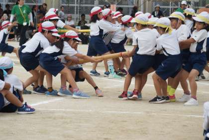 そして,競技ではどの色も掛け声に合わせて,一生懸命棒を引っ張っていて,その真剣な表情が印象的でした。個人戦では,目の前の相手と、総力戦では各色工夫して棒を取りに行っていました。勝敗はつきましたが,どの色も本気で頑張っていたので3年生として一致団結できたと思います。子どもたちの頑張りに拍手を送りたいと思います。
