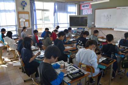 「伝統」という言葉を毛筆で書きました。「伝統」という言葉についてクラスで考えてから書き始めました。いつもより一画一画丁寧に筆を運んでいました。