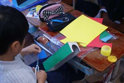 4年生の図工では,動くおもちゃ作りに取り組んでいます。速さを追及している子どももいれば,デザインを追求している子どももいます。どんな車になるのか楽しみです。