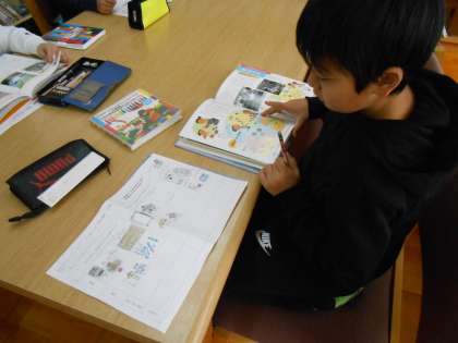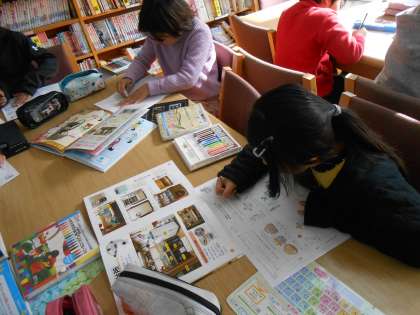 社会では,「昔をつたえるもの」の学習で昔の道具調べをしました。