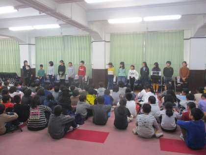 最後は,各ブースの店長と区長から売り上げや寄付金の報告がありました。どのお店も黒字で終えることができ,自分たちの頑張りを讃えて,拍手でスチューデントシティ学習を終えることができました。多くのボランティアの方にご協力いただき,子どもたちは,貴重な体験をすることができました。ありがとうございました。本校だけでなく,他校の子どもたちとも交流することで学びも広がりました。この学びを今後に生かしていきます。