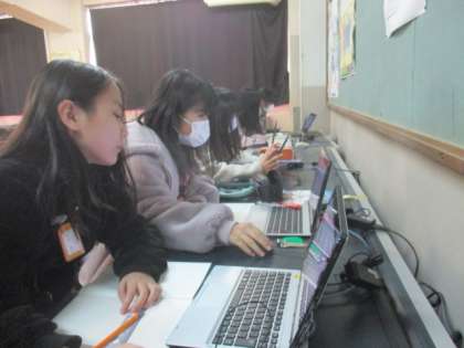 社会科では日本とつながりの深い国々(アメリカ,中国,韓国,サウジアラビア)のことを調べています。自分たちで調べ,まとめ,最終的には発表をしていきたいと思います。インターネットも効果的に使っていました。