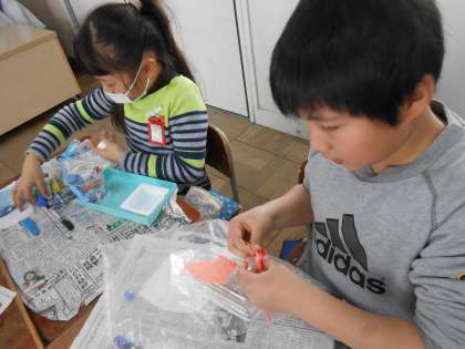 「めっちゃのびる!」「きれいな色ができた!」と,出来上がりをイメージしながら,とても楽しそうに学習に取り組んでいました。