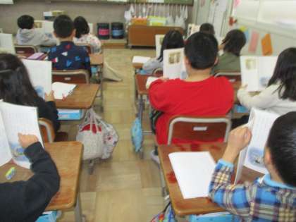 国語科のたぬきの糸車では,場面ごとでたぬきとおかみさんの気持ちについて想像し,考えてきました。一人学びの時間でじっくりとたぬきとおかみさんの気持ちを想像し,全体交流の時にはたくさんの考えが出てきました。最初はなんとなく読んでいたお話も,気持ちを想像して読むことで,また違った感覚でお話を楽しんでいる子どもたちでした。音読も最初のころに比べて姿勢よく,テンポよく読むことができています。
