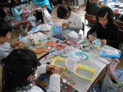 そして,紙粘土が乾いてしまう前にがんばって完成させよう!と,今日で小物入れが完成した人が何名かいました。