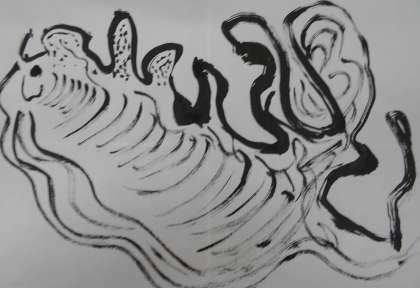 新しい課題の中で図工「墨で表す」があります。習字セットと半紙をつかって,思い思いの作品をつくってみてください。コツは,水の量を多めにしておくことです。自分で好みの濃さをいろいろ組み合わせましょう。はじめから,「これを描こう」と決めても良いですし,とりあえず描いく中で思わぬ発想が浮かんだりもします。ぜひ,楽しんでしてみてくださいね。