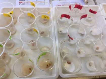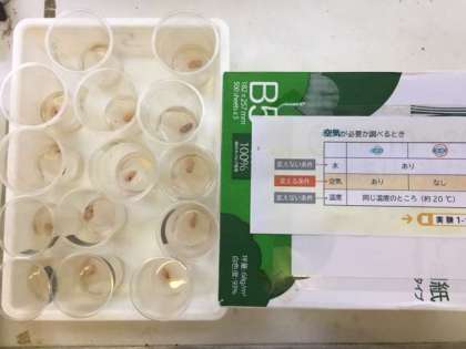 植物の発芽に必要な条件を調べるために,インゲンマメの種子を使って実験しています。(理科の教科書P.24〜)