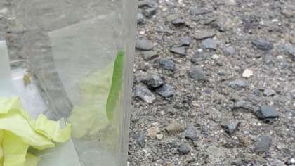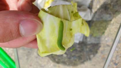 前回の成長日記から,1週間もたっていませんが,この数日の青虫さんの食よくにはおどろきです。朝入れたキャベツがあっという間にあなだらけになってしまいます。
