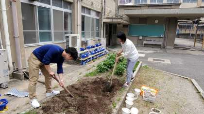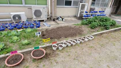今日も,いいお天気でした。先生たちで,学年の花だんのせいびをしました。