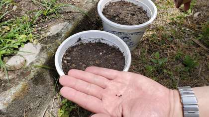 ホウセンカは,2つ目の写真のように,あなをあけずに,3つぶずつまき,うすく土をかけます。