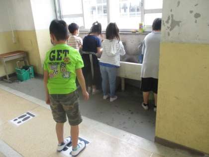 しかし,まだまだコロナ感染予防に努めるため,子どもたち自身がこれまでとは意識を変えていかなければならないことも多くあります。今日も,こまめに手洗いをしたり,密にならないよう,トイレや手洗い場では,足形に立つなどの約束を確認しました。