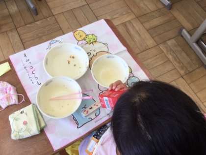 「おいしかったぁ!」の声とともに,あっという間に完食した1年生もいました。