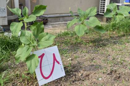 3ねんせいが ひまわりを そだてています。