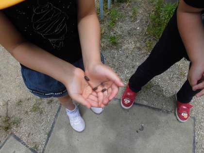 せいかつかのがくしゅうで,がっこうえんをたんけんしました。せみのぬけがらをみつけたり,なめくじをみつけたり,だんごむしをみつけたり,さまざまなはっけんがあるたび,かんせいがあがっていました。だんごむしが,はるより,おおきくなっていることにもきづきました。いきものもどんどんせいちょうしているのですね。