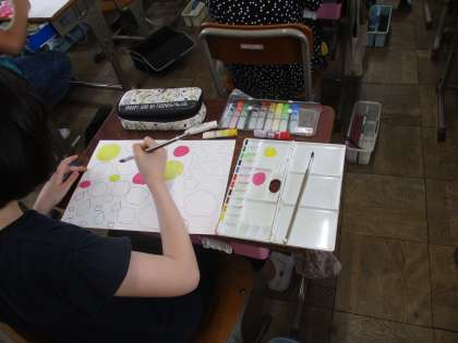5・6時間目には図画工作科の「心のもよう」をしました。