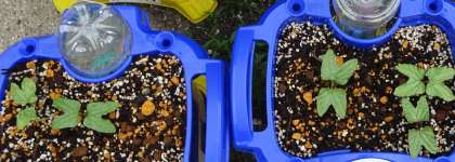 先週に植えた朝顔の種から 双葉が出ました。