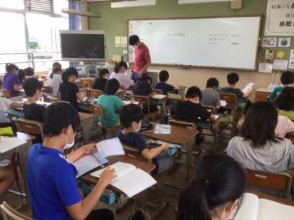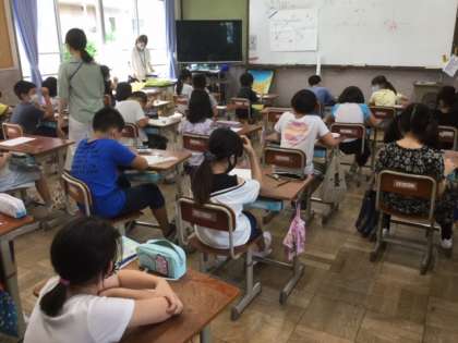 今日は,初めての「のびっこタイム」の活用について説明をしている学級や,早速,計算や漢字の問題に取り組んでいる学級がありました。