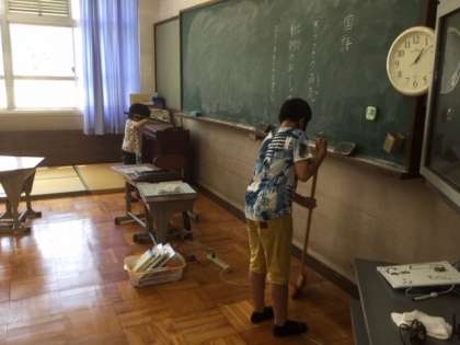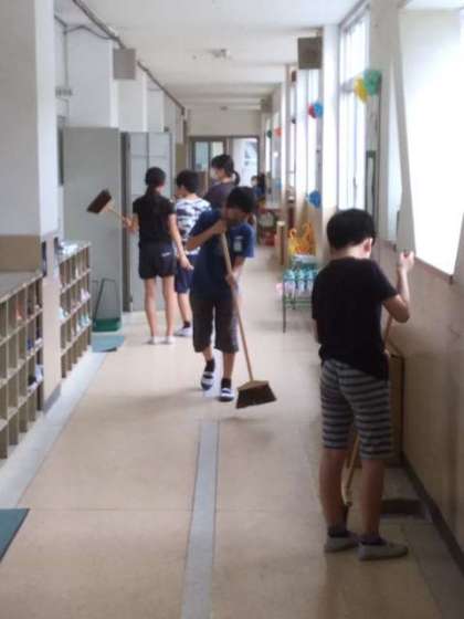 各教室と教室前の廊下の掃き掃除を中心に,1年生は6年生がしてくれました。