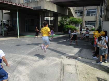 今日は,梅雨の間の晴れ間で,中間休みには,感染防止に留意しながら外遊びを楽しみました。