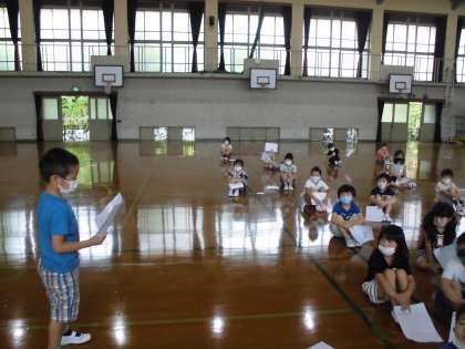 さいごには,みんなのまえでじこしょうかいすることにもちょうせんしました。