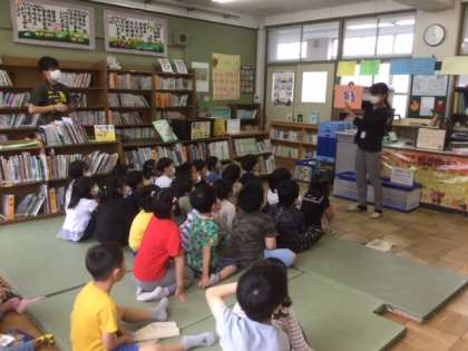 今日は,1年生が学校図書館の使い方について指導をしてもらいました。みんなで使う場所では,どのように過ごしたらよいでしょう?みんなの本は,どのように扱うとよいでしょう?