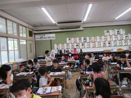 また,1枚目の半紙に書いたところで,自分の作品とお手本を見比べて,改善点はどこかと考えてみました。そして2枚目の作品に活かしました。