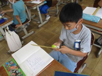 算数科の「長さ」では,身近にあるいろいろなものの長さを予想し,30cmものさしで確かめる活動を行いました。