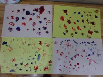 画用紙にスタンプをしました。