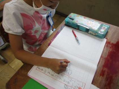 最初に,夏を感じるものをそれぞれで考え,ノートに書いていきました。夏を想像しながらたくさん見つけることが出来ていましたね。