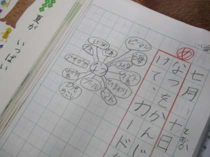 国語科の学習では,夏だと感じる言葉をあつめカードづくりをしました。