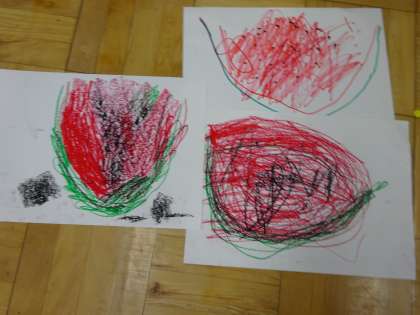 クレパスで スイカの絵を描きました。