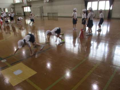 今日は体育科の授業でいろいろじゃんけんというじゃんけんをしました。動物になりきって動き,じゃんけんに勝ったら次の場所へ進めるというゲームです。