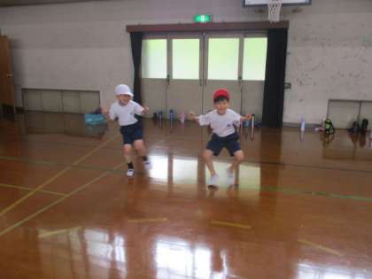 カニ,くまやうさぎ,あざらしなどになりきって体を動かしている子どもたちでした。