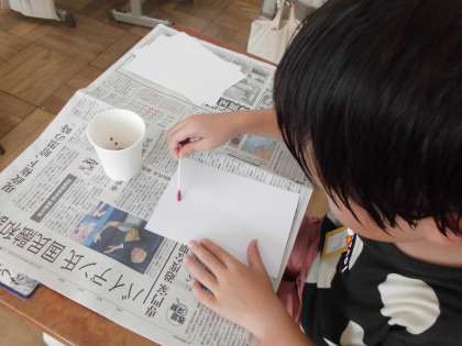 あさがおのはなのすてきないろみずができたので,こころをこめてえをえがきました。