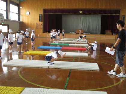 今日の交流体育はマット運動でした。