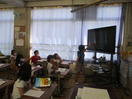 今日の算数でも,テープ図をつかって考えを深めました。テープ図にするとどこが分かって,どこを求めたいのかが分かりやすくなります。書いた図を見ながら式をたて,答えを求めました。テープ図を書くことにもだいぶ慣れてきて,素早く書けるようになってきた子どもたちです。