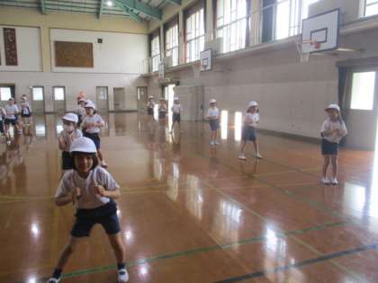 今日も元気いっぱいに,体を大きく使ってダンスを頑張りました。みんなの動きもだんだんとそろってきてとてもかっこいいです。みんなで心を一つにして,リズムに合わせて体を動かしましょうね。
